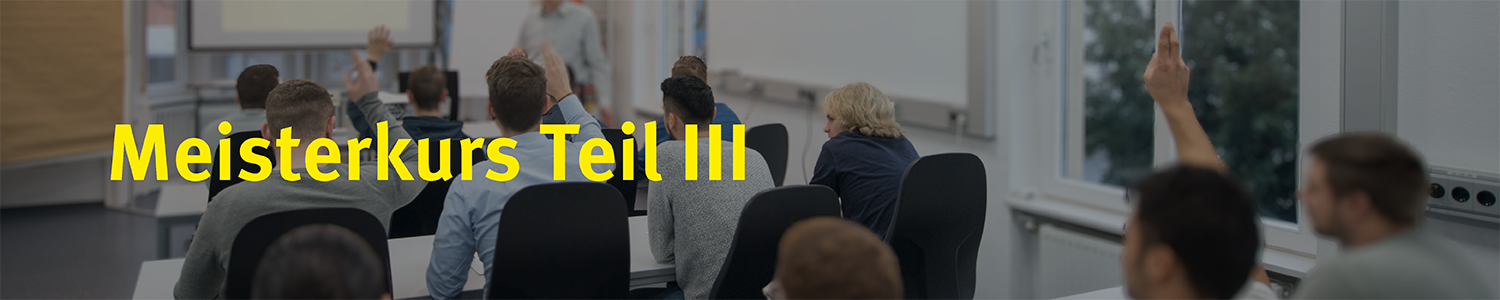 Mit dem Teil III weisen Sie nach, dass Sie das notwendige Wissen besitzen, selbstständig einen Betrieb zu führen. Denn ein/e Meister/in benötigt nicht nur handwerkliches Geschick und technisches Können sondern benötigt für seine/ihre Zukunft die erforderlichen betriebswirtschaftlichen, kaufmännischen und rechtlichen Kenntnisse um einen eigenen Betrieb langfristig erfolgreich leiten zu können.